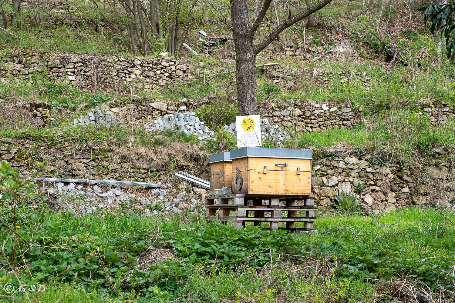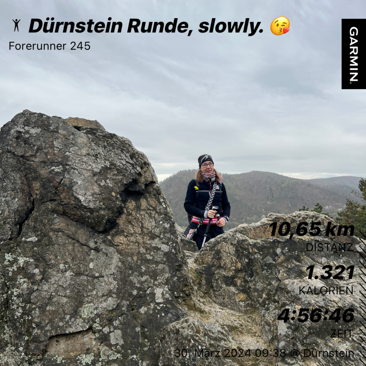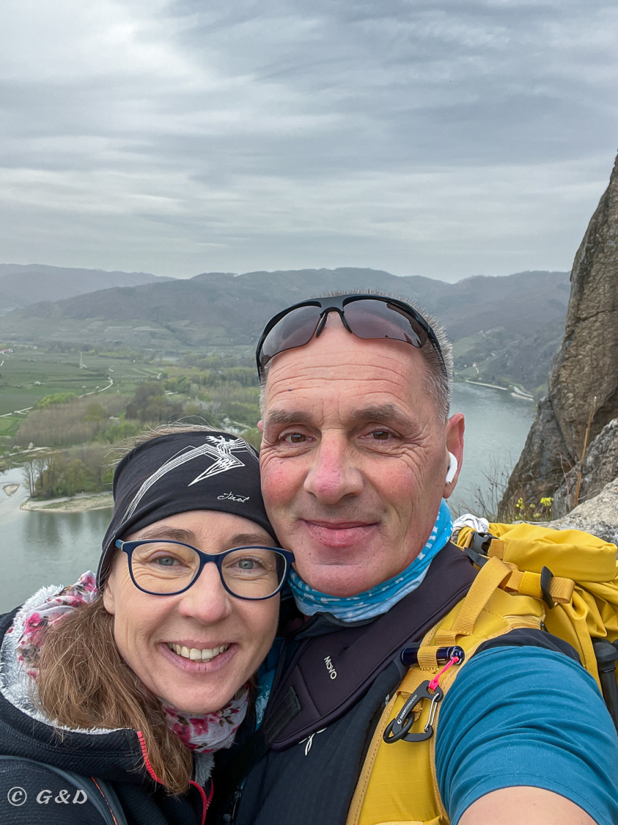 Wir parken das Auto in Dürnstein (Tagespreis € 6.-) Bereits daheim haben wir auf der Komoot Wander App eine Runde herausgesucht, nicht zu weit, etwa 11 Kilometer. Zuerst zur Ruine Dürnstein, dort viele Menschen, Gott sei Dank sind 99% zu faul auch nur einen Schritt weiter als bis zur Ruine zu gehen. Deswegen auf der restlichen Tour nur wenige Wanderer unterwegs. Wir lassen uns echt Zeit, genießen die Natur. Durch Weingärten und Hohlwegen und so genannten Holzstraßen geht es retour nach Dürnstein. Da es noch nicht spät ist, fahren wir zum Jauerling (Berg) und gehen auch dort eine Minirunde 3 km zum Gipfel und zum Naturparkhaus wo gerade ein Berglauf stattgefunden hat. Dann fahren wir zurück nach „Spitz an der Donau“ zur „Donauprinzessin“, ein kleines Kaffeehaus“ auf eine sehr gut süße Jause. Ein paar Marillenblüten konnten wir auch noch sehen, eine Geocache haben wir gefunden und einen bemalten Stein zum weiterreisen lassen.